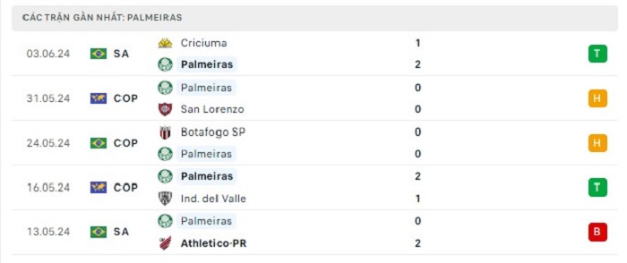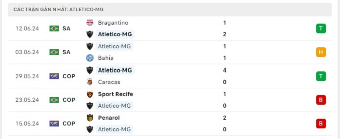 Phong độ gần đây Atletico Mineiro vs Palmeiras