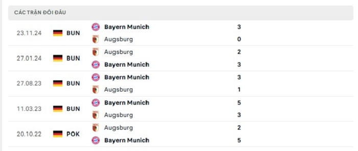 Phong độ gần đây Augsburg vs Bayern Munich