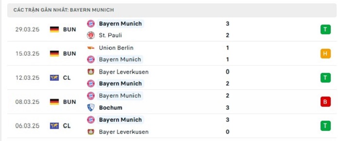 - Phong độ Bayern Munich