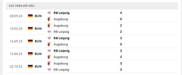 Phong độ gần đây Augsburg vs RB Leipzig