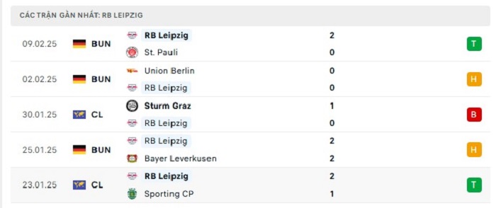 - Phong độ RB Leipzig
