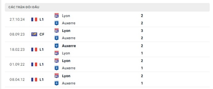 Phong độ gần đây Auxerre vs Lyon