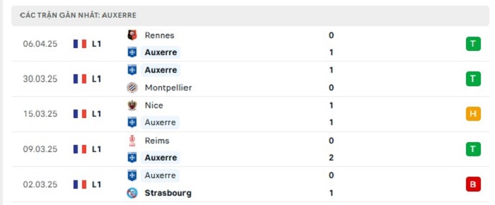 - Phong độ Auxerre