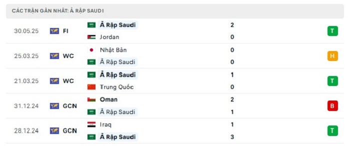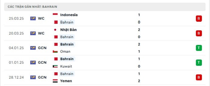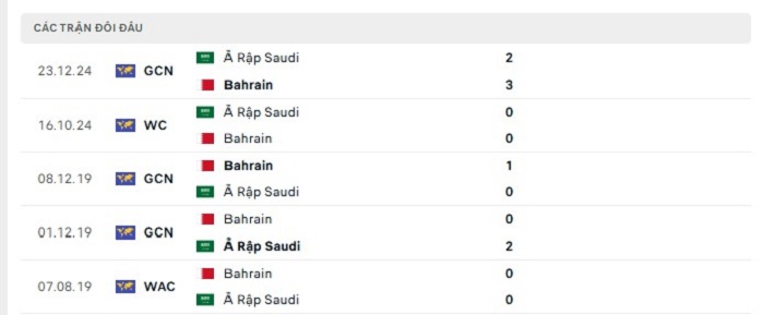 Phong độ gần đây Bahrain vs Saudi Arabia