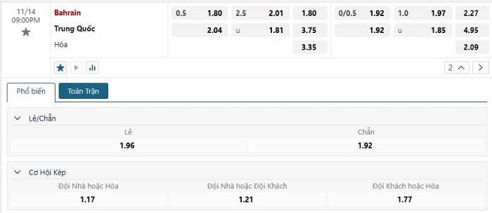 Soi kèo châu Âu Bahrain vs Trung Quốc