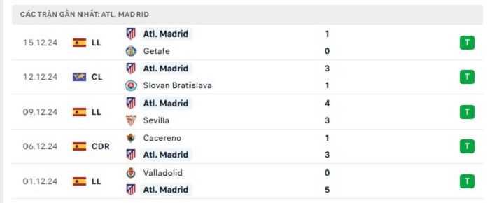 Phong độ gần đây Barcelona vs Atletico Madrid
