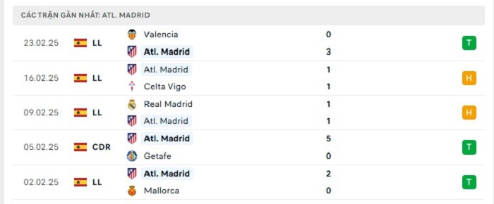 Phong độ gần đây Barcelona vs Atletico Madrid