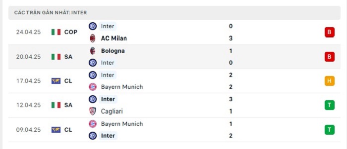 - Phong độ Inter Milan