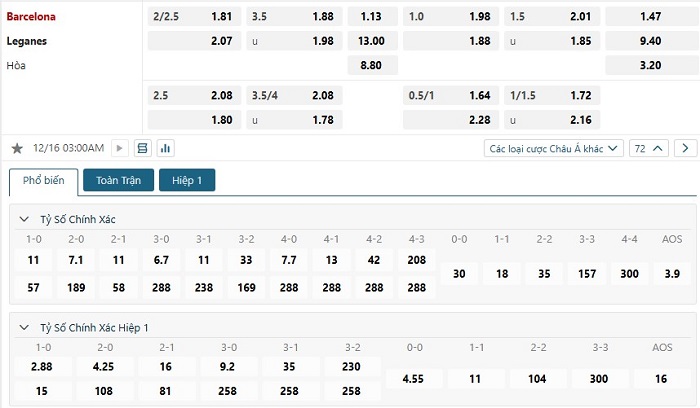 Soi kèo châu Á, kèo chấp Barcelona vs Leganes