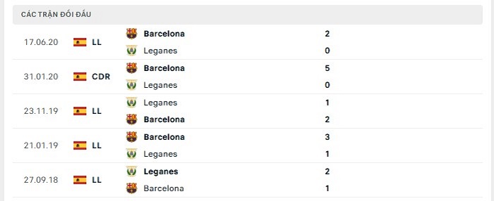 Những trận gặp nhau giữa Barcelona và Leganes trong quá khứ vốn cũng có khá nhiều bàn thắng ghi được , cụ thể là 8 trong 9 lần hai đội gặp nhau trước đây đều có được từ 3 bàn thắng ghi được trở lên trong trận. Trên sân nhà của mình thì Barcelona cũng ghi được từ 2 bàn thắng trở lên vào lưới Leganes trong những lần tiếp đón đối thủ này trước đây, do đó mà có thể kỳ vọng tới một trận đấu có tỷ số cao ghi được nghiêng về phía đội chủ nhà Barcelona ở lần ra sân sắp tới.