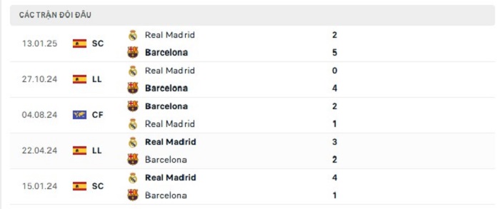 Phong độ gần đây Barcelona vs Real Madrid