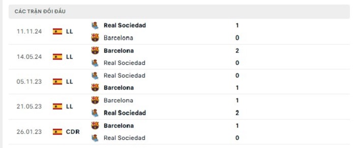Bảng bóng đá trận đấu Barcelona vs Real Sociedad