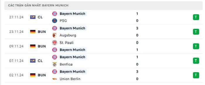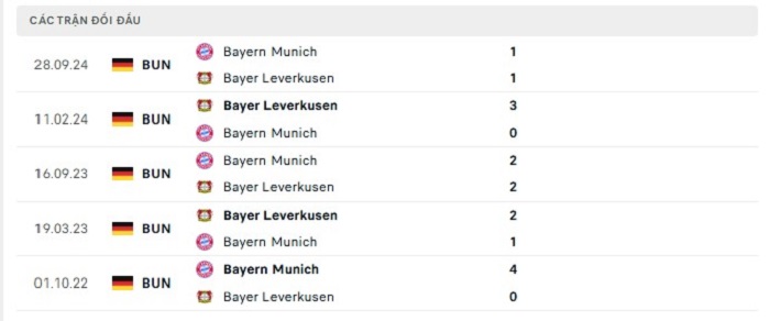 Bảng bóng đá trận đấu Bayern Munich vs Bayer Leverkusen