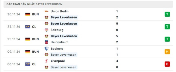 Phong độ gần đây Bayern Munich vs Bayer Leverkusen