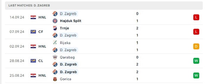 - Phong độ Dinamo Zagreb