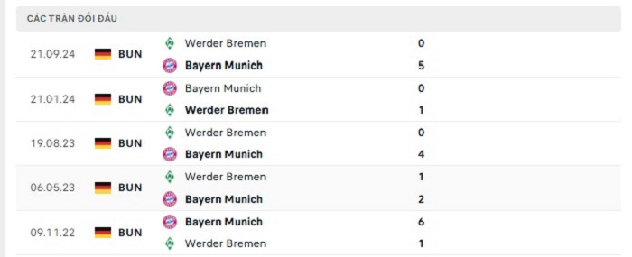 Bảng bóng đá trận đấu Bayern Munich vs Werder Bremen