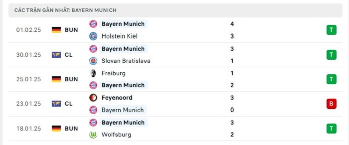 - Phong độ Bayern Munich