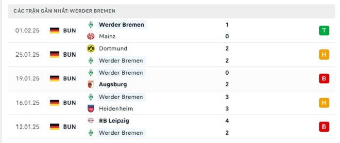 - Phong độ Werder Bremen