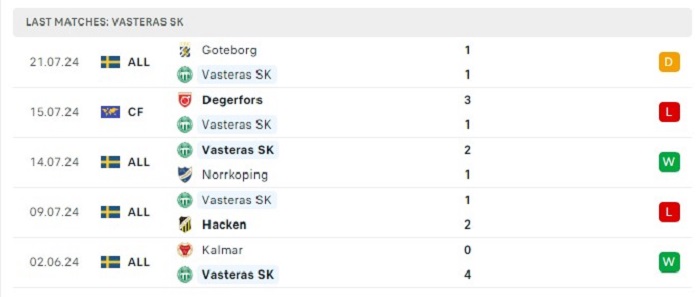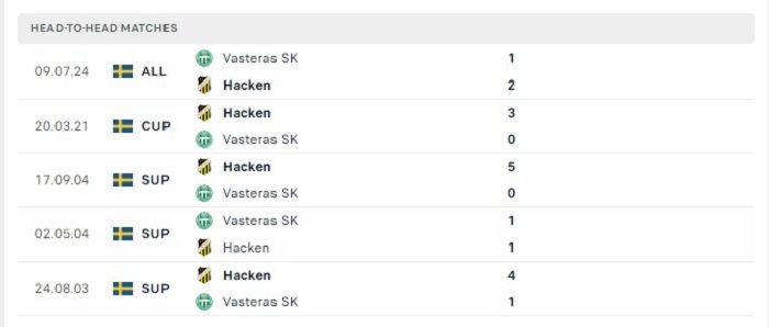 Trong 4 lần gặp nhau gần đây của hai đội thì chỉ có duy nhất 1 trận đấu có nhiều hơn 3 bàn thắng ghi được trong trận, trên sân nhà của mình BK Hacken vẫn đang giữ sạch lưới trước Vasteras trong 2 lần đón tiếp đối thủ này gần đây, hàng công của Vasteras ở thời điểm hiện tại thi đấu cũng không thực sự hiệu quả do đó khó có thể ghi bàn trước đội chủ nhà, trận đấu sắp tới vì vậy mà cũng sẽ khó có thể xuất hiện được tỷ số cao ghi được trong trận.