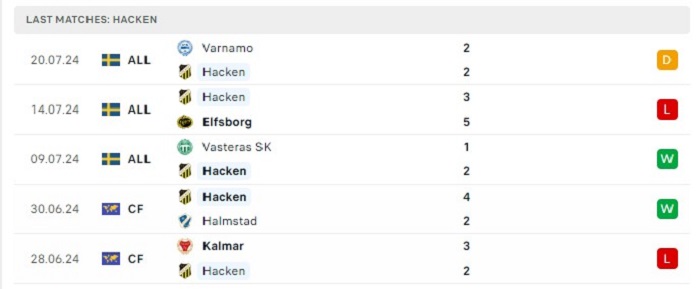 Phong độ gần đây BK Hacken vs Vasteras