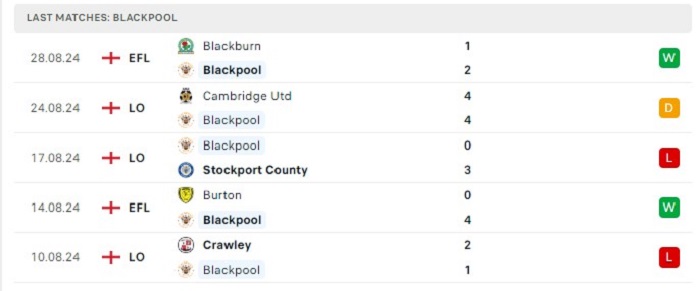 • Phong độ Blackpool