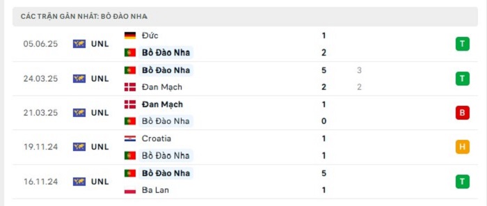 Phong độ gần đây Bồ Đào Nha vs Tây Ban Nha