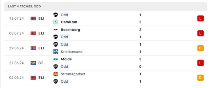 Phong độ gần đây Bodo Glimt vs Odd BK