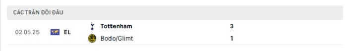 Lịch sử đối đầu của Bodo Glimt vs Tottenham