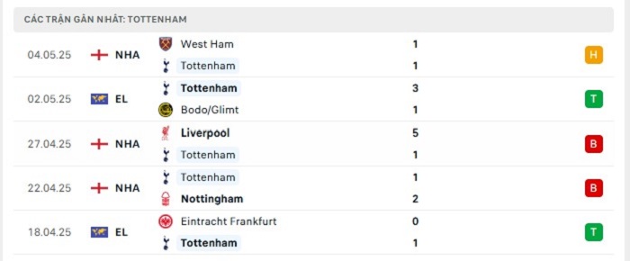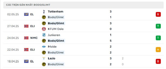 Phong độ gần đây Bodo Glimt vs Tottenham