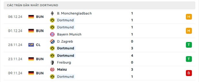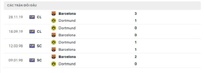 Phong độ gần đây Borussia Dortmund vs Barcelona