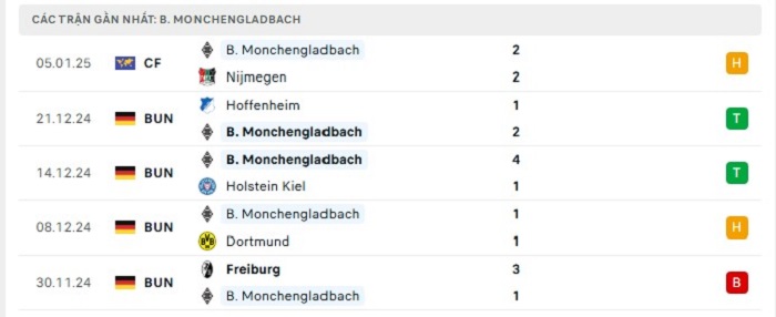 - Phong độ Borussia M’gladbach