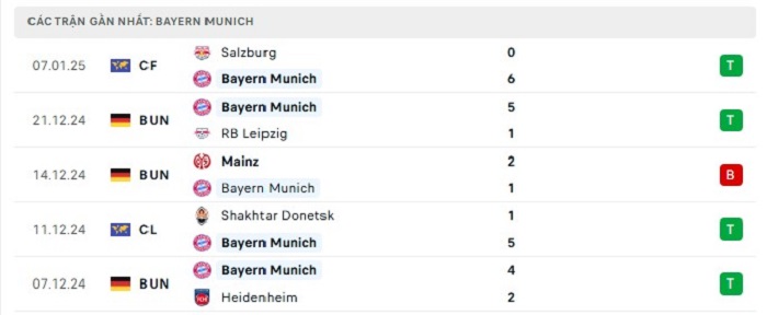 - Phong độ Bayern Munich