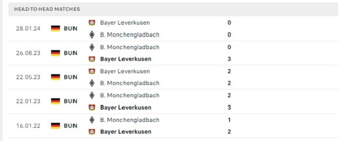 Phong độ gần đây Borussia Monchengladbach vs Bayer Leverkusen