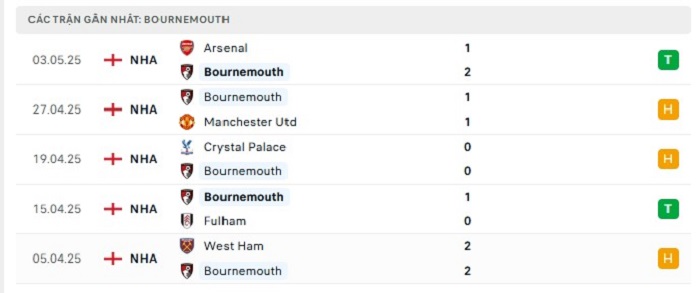 - Phong độ Bournemouth