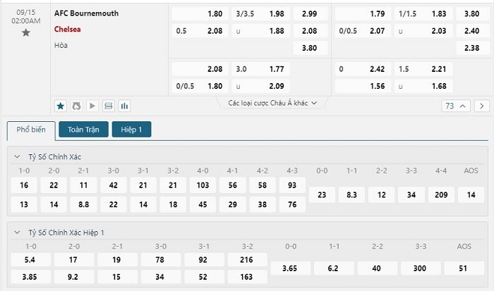Soi kèo tỷ số Bournemouth vs Chelsea