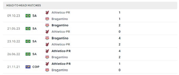 Lịch sử đối đầu của Bragantino vs Athletico-PR