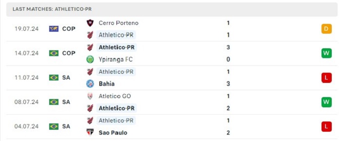 • Phong độ Athletico-PR
