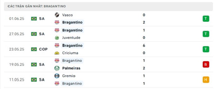 Phong độ gần đây Bragantino vs Bahia