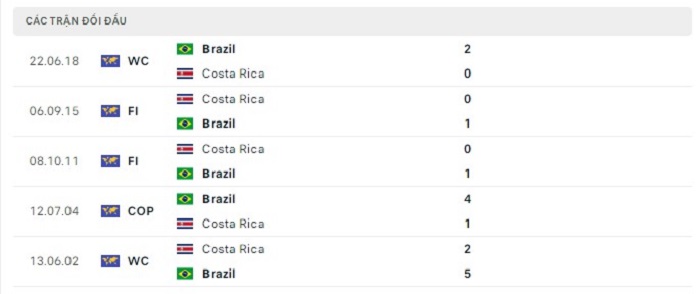 Sau những trận cầu kịch tính với nhiều bàn thắng ghi được thì những năm gần đây các trận đấu giữa Brazil và Costa Rica có tỷ lệ ghi bàn tương đối thấp. Cụ thể là 3 trận gặp nhau gần nhất đều là những chiến thắng tối thiểu và chiến thắng nhẹ của Brazil trước đối thủ này. Trận đấu sắp tới cũng sẽ khó có thể kỳ vọng vào một trận đấu bùng nổ về mặt tỷ số khi mà Brazil cũng sẽ có những toan tính về mặt lực lượng.
