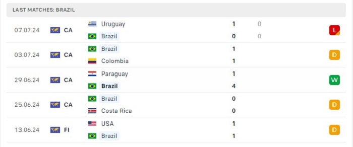Phong độ gần đây Brazil vs Ecuador