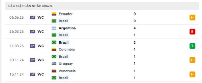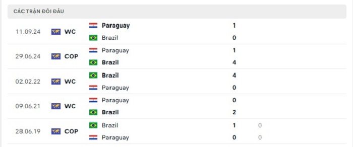 Phong độ gần đây Brazil vs Paraguay