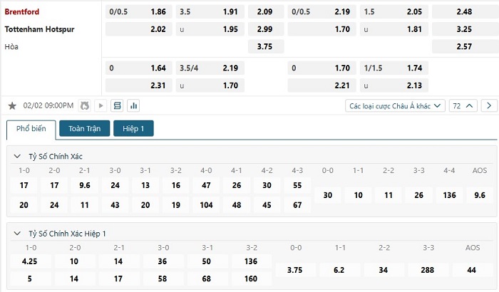 Soi kèo tỷ số Brentford vs Tottenham