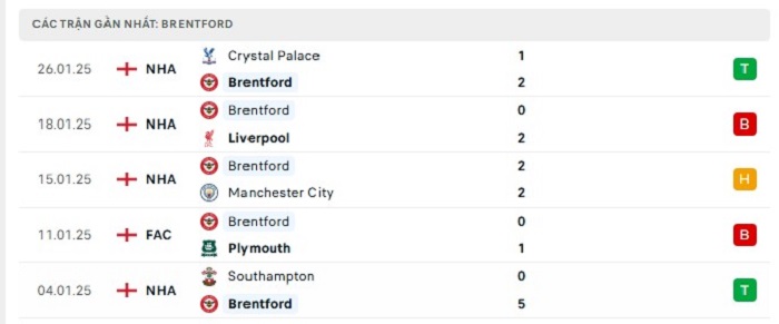 - Phong độ Brentford