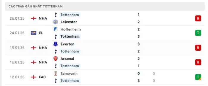 - Phong độ Tottenham