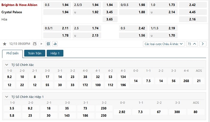Soi kèo tỷ số Brighton vs Crystal Palace