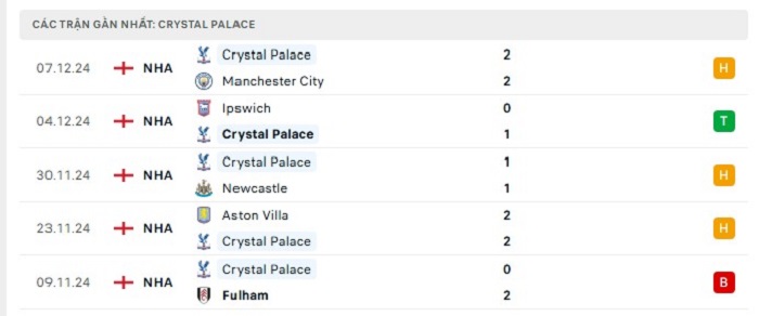 • Phong độ Crystal Palace