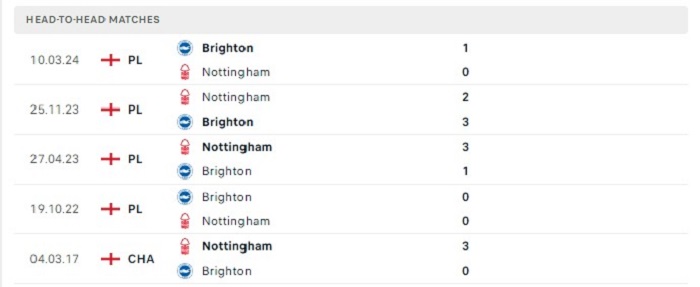 Cả Brighton và Nottingham đều đang thể hiện được lối chơi khá chắc chắn của mình tại Ngoại hạng Anh khi mới chỉ nhận 2 bàn thua sau 4 lần ra sân của mình, giữa hai đội trong quá khứ cũng đang có 2 trận đấu liên tiếp trên sân của Brighton gần đây chỉ ghi được vỏn vẹn 1 bàn thắng với hiệu suất thực sự kém cỏi, trận đối đầu giữa Brighton và Nottingham sắp tới cũng vì vậy mà khó có thể đặt niềm tin vào một trận đấu bùng nổ về mặt tỷ số của cả hai đội.