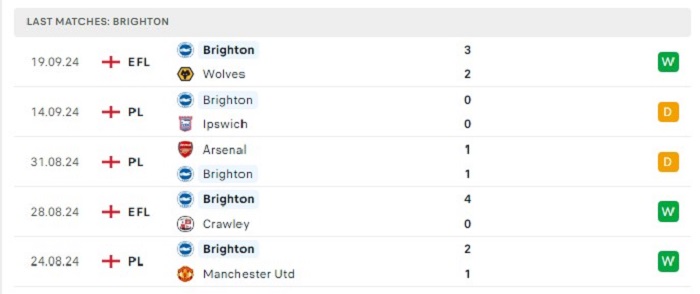 Phong độ gần đây Brighton vs Nottingham