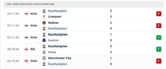 - Phong độ Southampton
