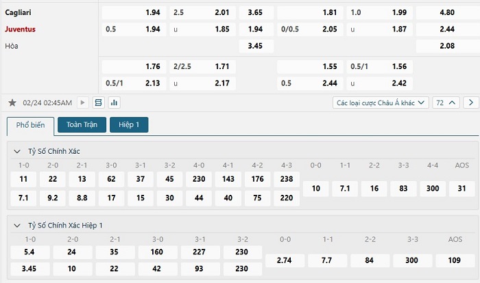 Soi kèo châu Á, kèo chấp Cagliari vs Juventus